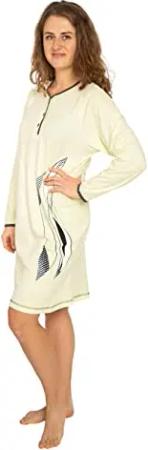 Damen Nachthemd Kurzarm oder Langarm 2er Pack, Baumwolle-Jersey Nachtwäsche, Schlafhemd Sleepshirt, Schlafkleid DW552/553 mit Kleiner Knopfleiste Gr: 40/42