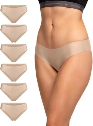 6er Pack Unsichtbare Bikini Slips aus Mikrofaser, für Sport & Alltag, Nahtlos, Sportunterhosen für Damen Beige S