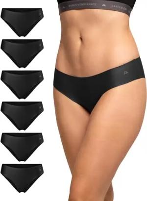 6er Pack Unsichtbare Bikini Slips aus Mikrofaser, für Sport & Alltag, Nahtlos, Sportunterhosen für Damen Schwarz M