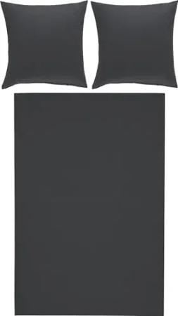 Bettwäsche, Bettgarnitur Uni Nördlingen anthrazit Größe 80x80 cm / 155x200 cm - flauschig angeraute Oberfläche für kalte Nächte, temperaturregulierend, mit Reißverschluss