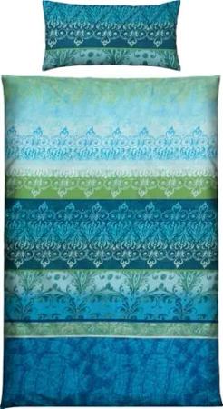 Bettwäsche Feinbiber Mauve-weiß-grün-Petrol Größe 1x 200x200 cm + 2X 80x80 cm