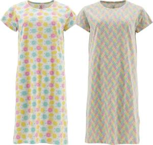 Damen-Nachthemd 2er-Pack Single-Jersey Zitronen bunt gelb Größe 40/42 - bequem geschnitten, Rundhalsausschnitt, leichte Qualität