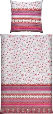 Mako-Satin Bettwäsche Blumen und Bordüre pink weiß Größe 80x80 cm / 135x200 cm - seidig weiche Qualität, temperaturausgleichend, mit Reißverschluss