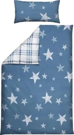 Wendebettwäsche Feinbiber Sterne und Karos blau Größe 40x80 cm / 135x220 cm - für kalte Nächte, samtig weich, wohlig warm, temperaturausgleichend, pflegeleicht, mit Reißverschluss
