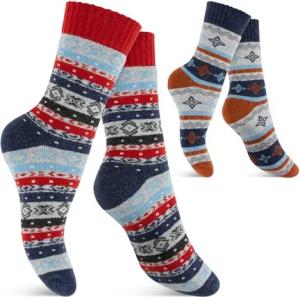 2 Paar Warme Hygge Winter Wollsocken im Vintage-Design - Blau 43-46