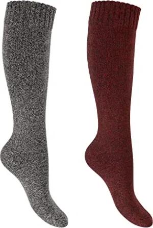 Damen Frottee Kniestrümpfe (2 Paar) Warme Baumwollsocken mit Thermo-Effekt - Rot-Grau 35-38