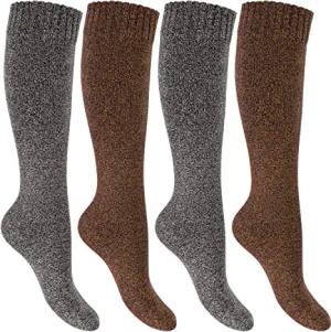 Damen Frottee Kniestrümpfe (4 Paar) Warme Baumwollsocken mit Thermo-Effekt - Rot-Grau 35-38