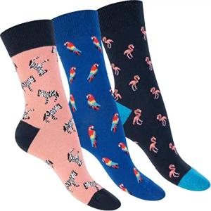 Damen & Herren Bunte Motiv Socken (3 Paar) Lustige Baumwoll Socken - Flamingo 41-46