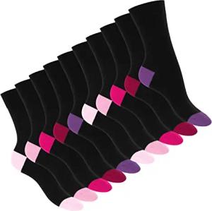 Damen und Herren Baumwoll-Socken (10 Paar) mit abgesetzter Ferse und Spitze - Berry 35-38