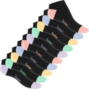 Damen und Herren Sneaker Socken (10 Paar) mit abgesetzter Ferse und Spitze - Schwarz 43-46