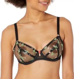 Damen Bügel Rosenblüte Plunge-BH, Durchsichtig, Schwarz, 80DD