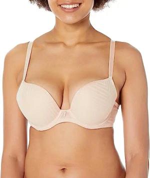 Damen Women's Offbeat Underwire Demi Molded Plunge Bra T-Shirt-BH, Undurchsichtige, Natürliches Beige, 80F