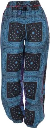 GURU SHOP Luftige Aladinhose, Boho Baumwollhose, Bedruckte Pluderhose, Yogahose - Blau, Damen, Size:L