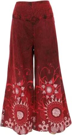 GURU SHOP Palazzohose, Boho Baumwollhose, Hosenrock mit Blüten, Schlaghose - Rot, Damen, Size:L