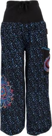 GURU SHOP Weite Pluderhose mit Breitem Bund, Mandalastickerei - Schwarz/blau, Damen, Size:S/M