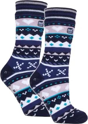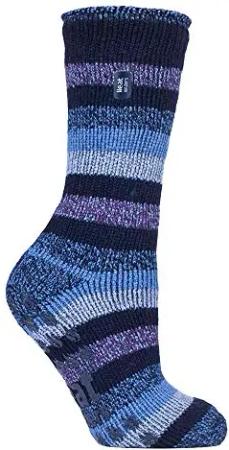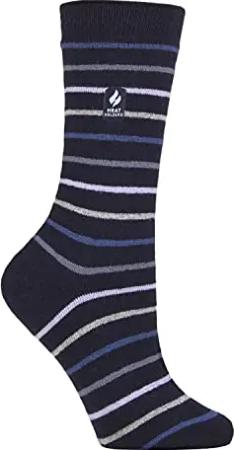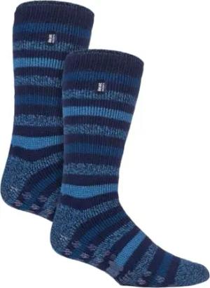 Damen Warme Anti Rutsch Stopper Thermo Socken mit ABS Sohle 2.3 TOG (37-42 EU, Marine-Streifen (Juniper))