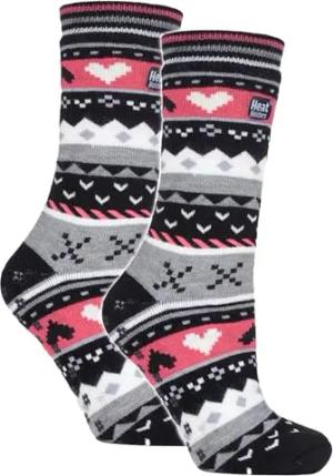 Damen 2 Paar Multi Gemusterte Thermosocken Antirutsch Kuschelsocken mit Noppen für Winter (37-42, Schwarz/Koralle)