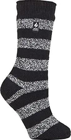 Damen Extra Warm Innen Flauschig Thermosocken für Geschenk | Socken für Winter (DE/NL/SE/PL, Numerisch, 37, 42, Regular, Regular, Schwarz/Weiß (Chunky Stripe))
