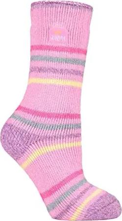Lite - Damen Dünn Bunt Muster Motiv Thermosocken für Geschenk | Socken für Winter (37-40, Lila Streifen (Jasmin))