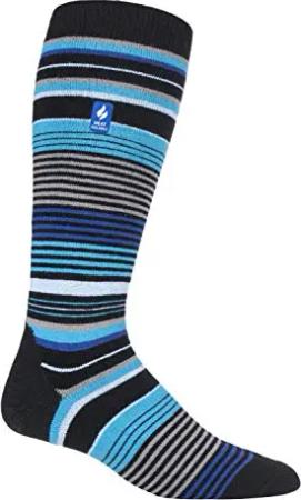Herren Bunt Muster Warm Dicke Gestreift Thermo Skisocken (39/45, Black/Navy)