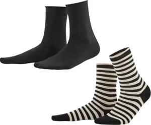 ALEXIS | Socken, 2er-Pack - Mittelhoher Schaft, Ideal für Damen, Bio-Baumwolle Material, Gestreifter und Unifarbener Look (39-42, Black/Sand)