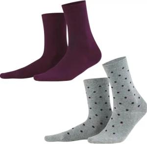 BETTINA | Socken, 2er-Pack - Komfortable Bio-Baumwollsocken, Formstabile Feinripp-Bündchen, Große Farbauswahl, Gepunktetes und Unifarbenes Design (39-42, Dark Prune/Dots)