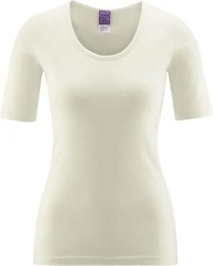 Juliane | Damen Tshirt Kurzarm-Shirt - Bio-Baumwolle, Feinripp, Ohne Seitennähte, Tiefer Ausschnitt, Doppelnahtsaum (48/50, Natural)
