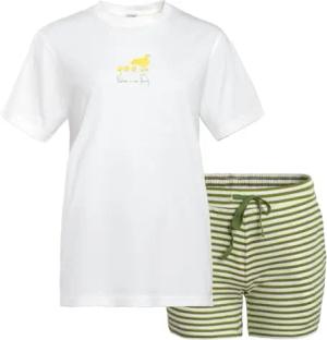 OSANA | Shorty-Pyjama - Komfort aus purer Bio-Baumwolle, markantes Ringel-Dessin, keckes Naturmotiv & Charme (XS, Nature is Our Family)