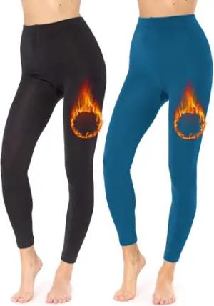 2er Pack Thermo Leggings Damen gefütterte Thermoleggings Thermohose Damen Winter Leggings warm Outdoor gefüttert MS-ATX-441 (Schwarz/Braun, M-L)