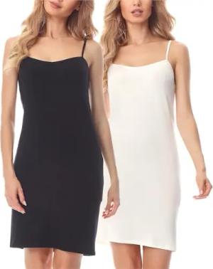 Damen Unterkleid kurz Petticoat Knielänge einstellbare Träger 2Pack MS10-203(2Pack-Schwarz/Ecru, S)