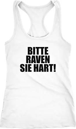 Damen Tanktop Party Feiern Spruch Shirt Techno - Bitte Raven Sie Hart! Racerback weiß XL