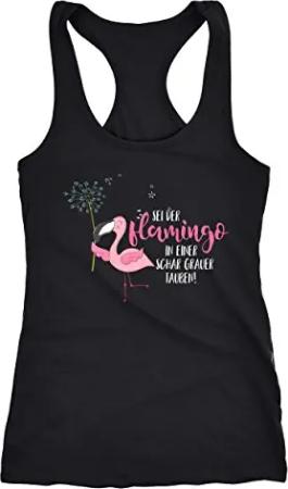 Damen Tanktop sei der Flamingo in Einer Schar Grauer Tauben Flamingo Pusteblume schwarz L