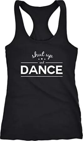 Damen Tanktop Tank Top Party-Shirt Shut up and Dance Party Feiern Sprüche Racerback schwarz M