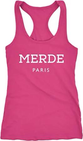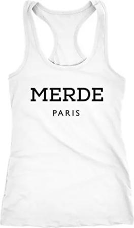 Freches Damen Tank-Top Shirt Merde Paris Racerback weiß XXL