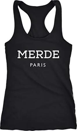 Freches Damen Tank-Top Shirt Merde Paris Racerback schwarz XXL