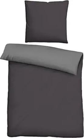 0455775 Bettwäsche Garnitur mit Kopfkissenbezug Linon 1x 200x200 cm + 2x 80x80 cm, titanium