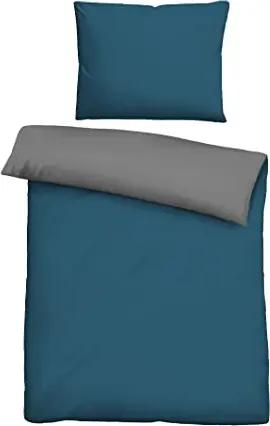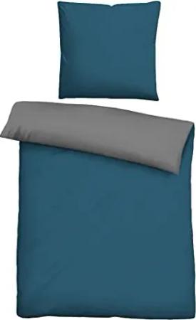 Melange-Flanell Bettwäsche 200x200 cm, 3-teilig mit 2X Kissenbezug 80x80 cm, 100% Baumwolle, Biber, mit Paspel, wärmend & weich, Reißverschluss, Winterbettwäsche, Uni, blau, Modell 0840500