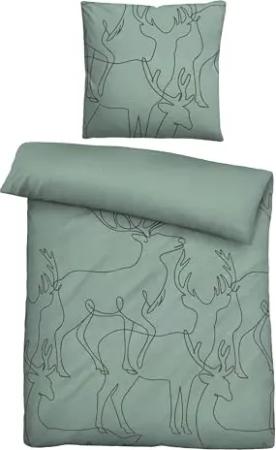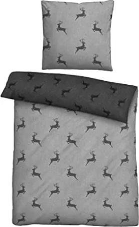 Baumwoll-Satin Bettwäsche 0614609 Hirsch 1x 155x220 cm + 1x 80x80 cm, sturmgrau