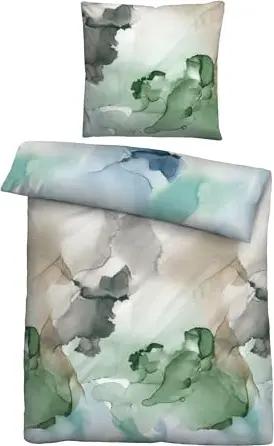 Bettwäsche Baumwoll-Satin 0614515 AQUARELL 1x 155x200 cm + 1x 80x80 cm, blau-grün