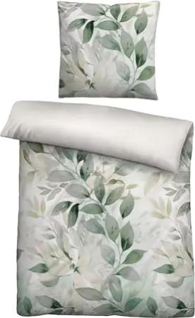 Feinbiber Bettwäsche 0004105 BLÄTTER 1x 155x220 cm + 1x 80x80 cm, fichte