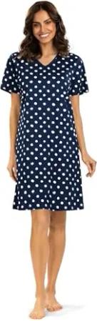 Damen Nachtemd 251222 Kurzarm Punkte Marine 100% Baumwolle Gr. 44 L