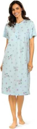 Damen Nachtemd 251229 Kurzarm Knopfleiste Bleu 100% Baumwolle Gr. 40 M