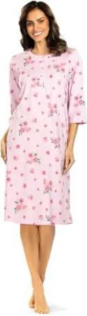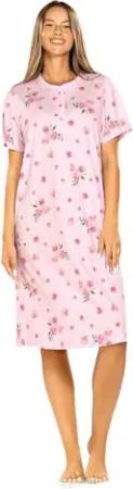 Damen Nachthemd 251251 Kurzarm Knopfleiste Farbe: Rose 100% Baumwolle Gr. 40 M