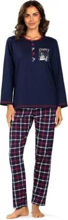 Damen Schlafanzug 242360 Langarm Knopfleiste Lange Hose Farbe: Marine 100% Baumwolle Gr. S 36-38