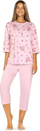 Damen Schlafanzug 251340 Halbarm 7/8 Hose Rosa 100% Baumwolle Gr. 56