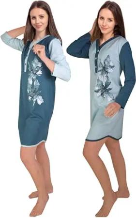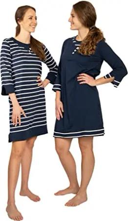 Damen Nachthemd 2/3 Langarm/Kurzarm 2 Stück Packung DW725/726, 100% Baumwolle Jersey (32/34, blau)