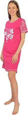 Damen Kurzarm Nachthemd DF024, 100% Baumwolle-Jersey, Gr.: 44/46