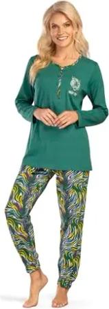 Damen Langarm Pyjama Schlafanzug Baumwolle Knopfleiste DF469 Gr.: 48