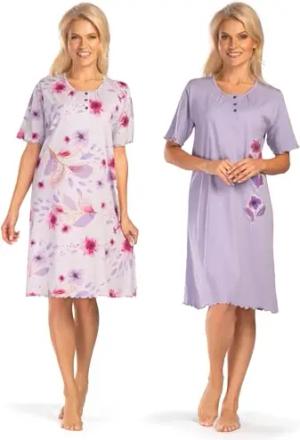 Damen Nachthemd Kurzarm 2er Pack, Baumwolle-Jersey Nachtwäsche, Schlafhemd Sleepshirt, Schlafkleid mit Kleiner Knopfleiste (DW552/553) Größe 36/38