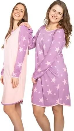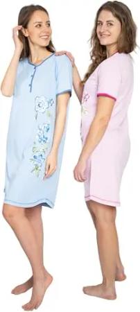 Damen Nachthemd Kurzarm oder Langarm 2er Pack, Baumwolle-Jersey Nachtwäsche, Schlafhemd Sleepshirt, Schlafkleid DW552/553 mit Kleiner Knopfleiste Gr: 40/42